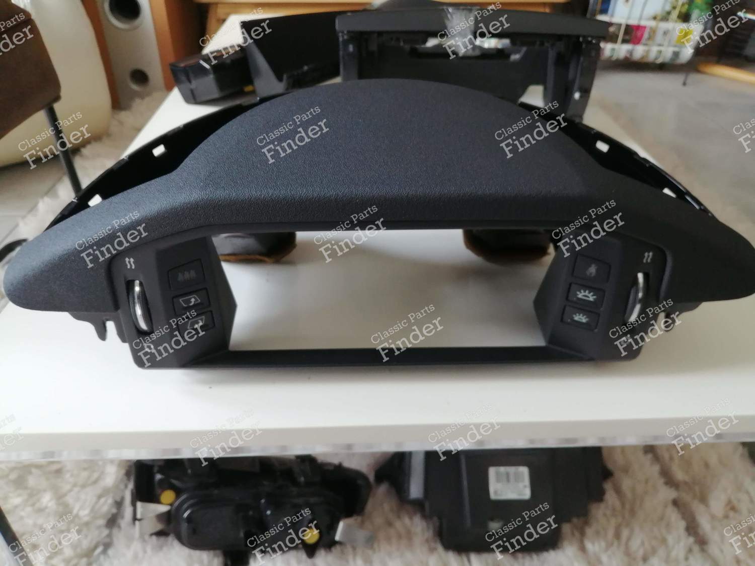 Siehe die Beschreibung in der Originalsprache (Französisch) : Habillage autour de l'écran central en parfait état. Comprend différents témoins et commandes (ceintures, éclairage, etc.) ainsi que les molettes de ventilation.