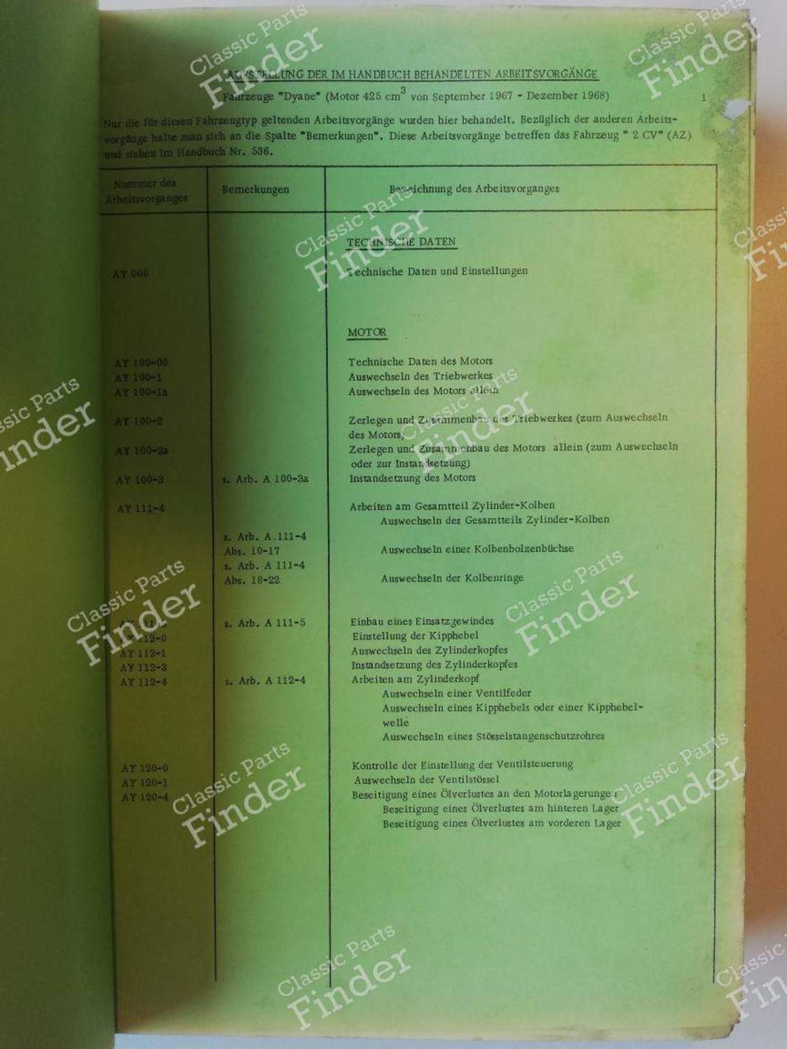 Seltenes deutschsprachiges Werkstatthandbuch für Citroën Dyane. Äußerst detailliert Jahr der Veröffentlichung: 1969 Anzahl der Seiten: 360 Gebrauchsspuren, aber vollständig. Keine fehlenden oder zerrissenen Seiten.
