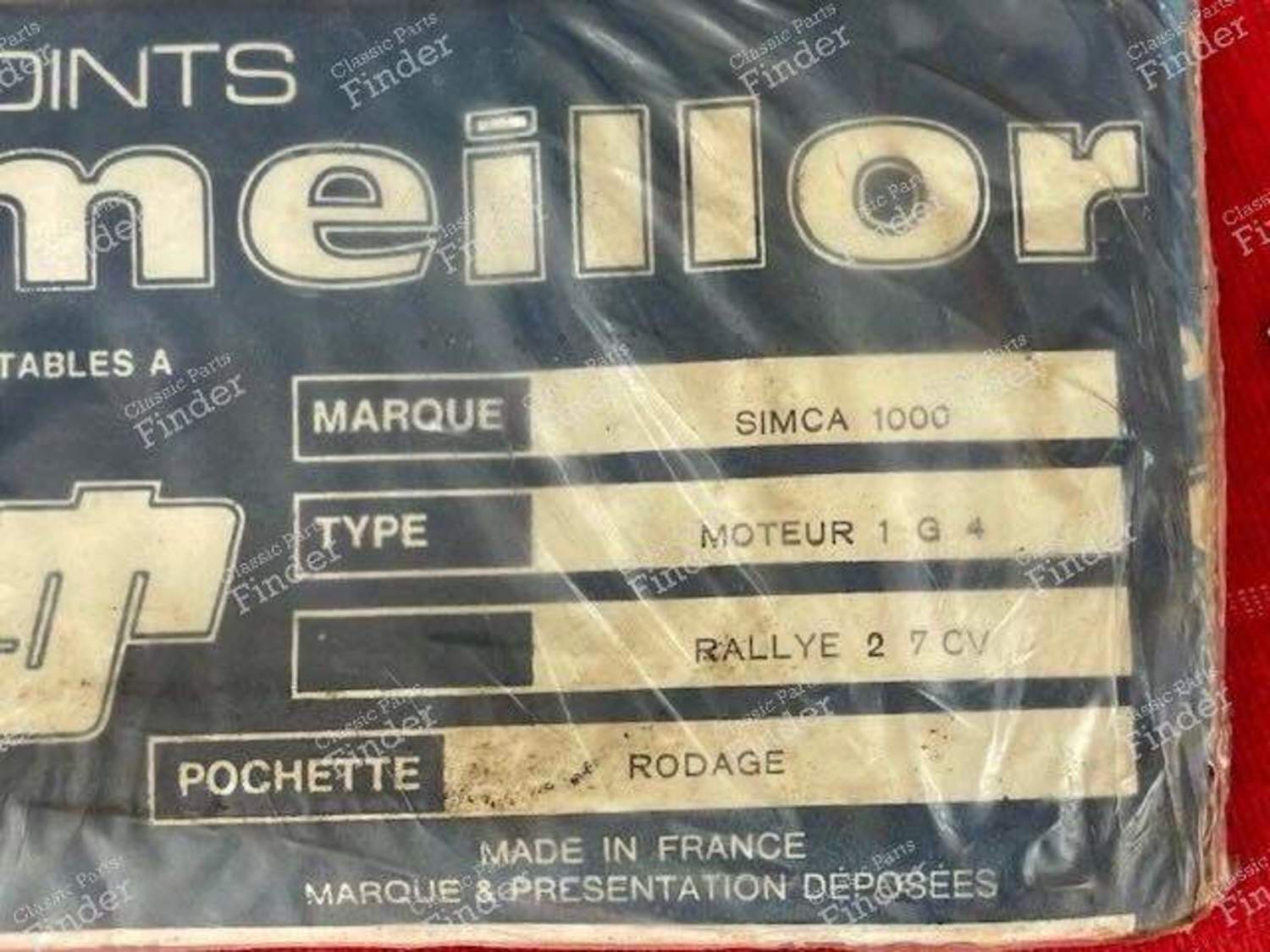 Die Classic Parts Finder Community bietet Ihnen eine Auswahl an Ersatzteilen für SIMCA 900 / Simc'4 / 1000 / 1005 / 1006 / 1118 /Abarth 1150, insbesondere das folgende Teil: Motordichtungen in folgendem Zustand an: neu. und wurde von Meillor hergestellt.