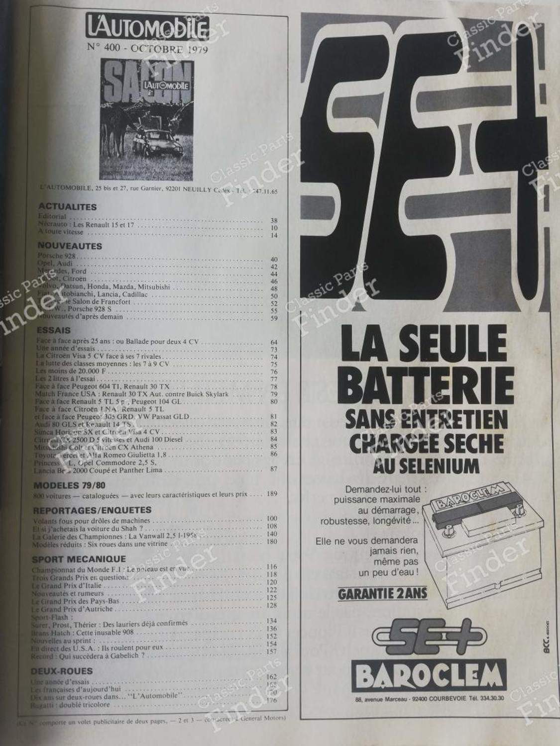 L'Automobile Magazine - #400 (October 1979) is one original (oem) vintage part.
