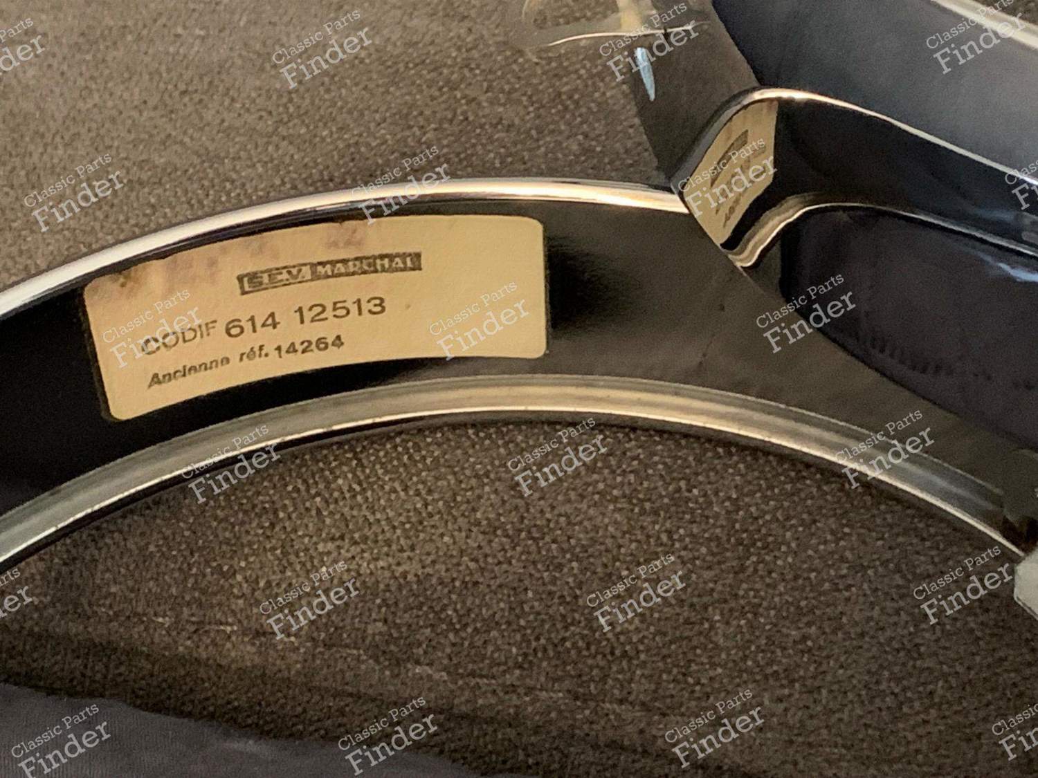 The Classic Parts Finder community offers you a selection of spare parts for your MATRA 530, and in particular the following part: Headlight casing & surround in the following condition: as new. The part carries the reference 614 12513 and was made by Marchal. This part is also compatible with: ALPINE A110 (1962 - 1977), PORSCHE 911 / 912 (901) (1964 - 1973).