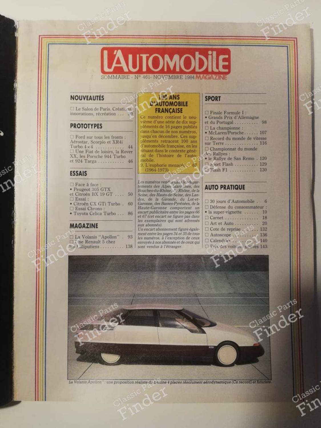 L'Automobile Magazine - November 1984 is one original (oem) vintage part.