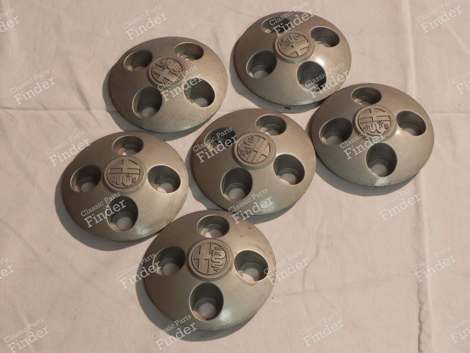 Enjoliveurs pour Alfa Roméo Giulietta voire Alfetta - Neufs, mais poussiéreux en raison d'un stockage prolongé Plusieurs de disponibles. Prix indiqué pour un lot de deux (m'aviser si besoin de plus)