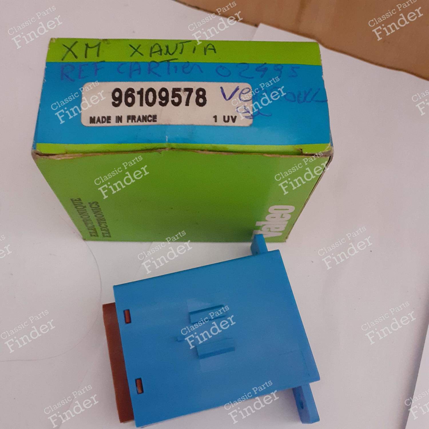 La communauté de Classic Parts Finder vous propose des pièces détachées pour votre CITROËN Xantia, et en particulier la pièce suivante: Relais (divers) dans un état neuf. Cette pièce porte la référence 96109578 et est fabriquée par Valeo. Cette pièce est également compatible avec: CITROËN BX (1982 - 1994).