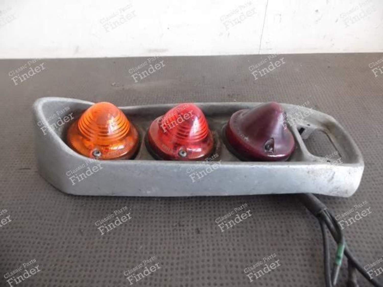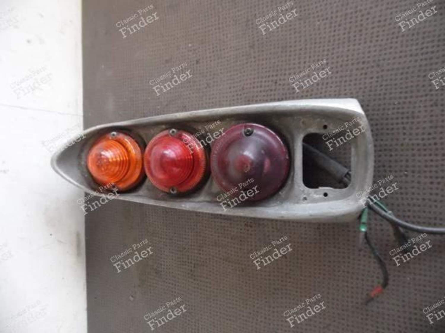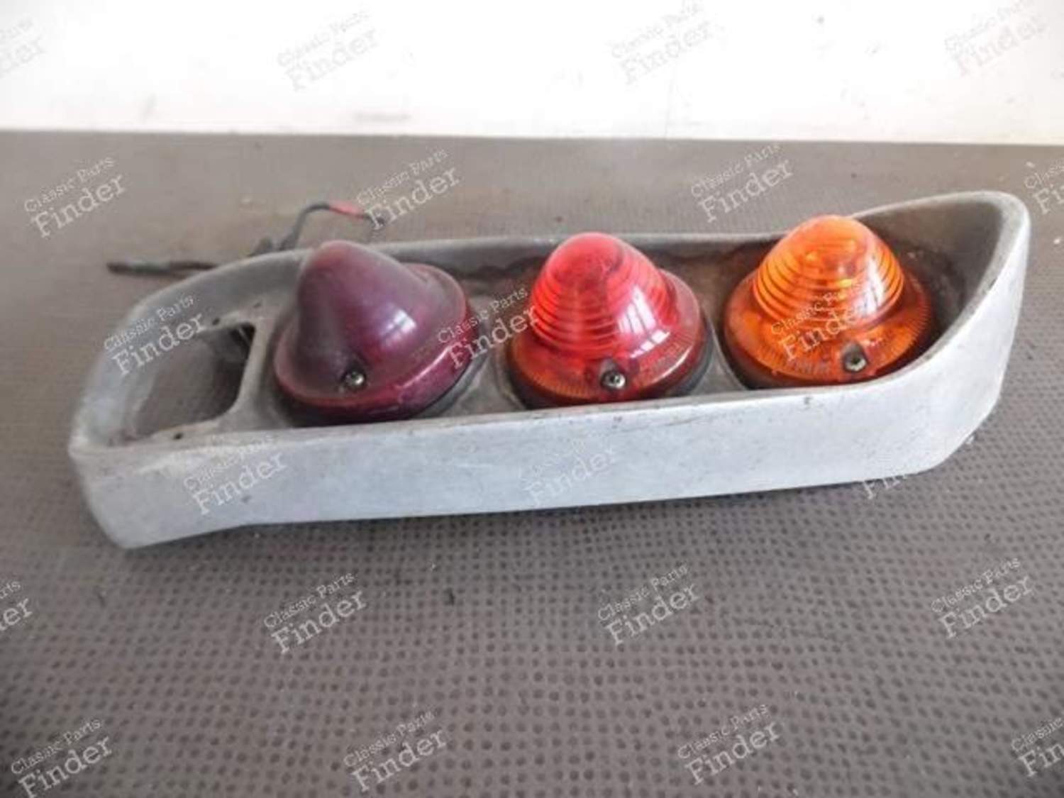 In der Originalsprache ansehen (Französisch) : Les feux arrière de DS/ID break, comme pour les DS et ID berlines, ont connu plusieurs évolutions au fil des millésimes, et selon les pays, souvent subtiles. Si la forme générale du pourtour reste la même, les cabochons sont parfois différents, ainsi que le catadioptre. Il s'agit ici vraisemblablement d'un feu produit entre fin 1961 et 1971. En effet, les cabochons ne sont pas crénelés avec un cerclage chromé (pre-1961), et le feu du bas reste un feu stop (devenu feu de recul en 1971). Contrairement aux berlines, ils n'existent pas en refabrication, à l'exception des cabochons, communs aux 2cv, Type H, etc. Si vous vous intéressez amplement à toutes ces subtilités, nous vous recommandons de consulter l'excellent site du Docteur Danche, le nuancier des DS) ;).