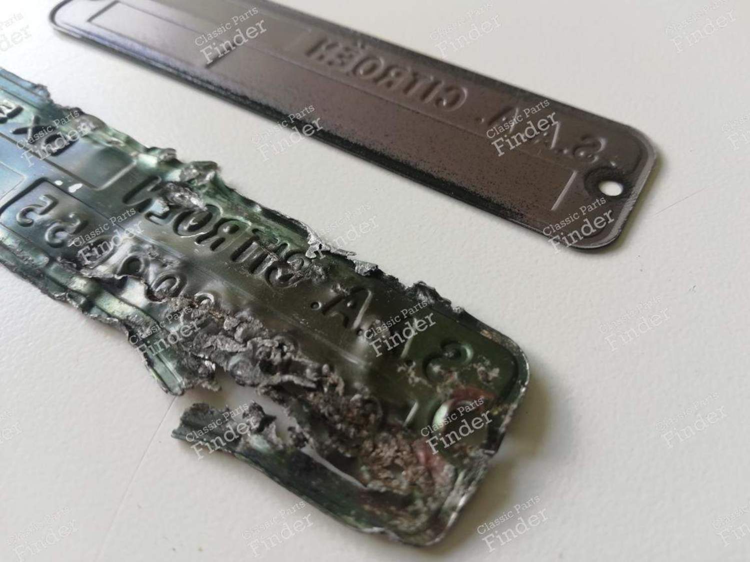 Oft leiden Motorschilder unter dem Zahn der Zeit, und bei Citroën insbesondere unter dem Auslaufen von Hydraulikflüssigkeit (sie werden grün). Heutzu ...