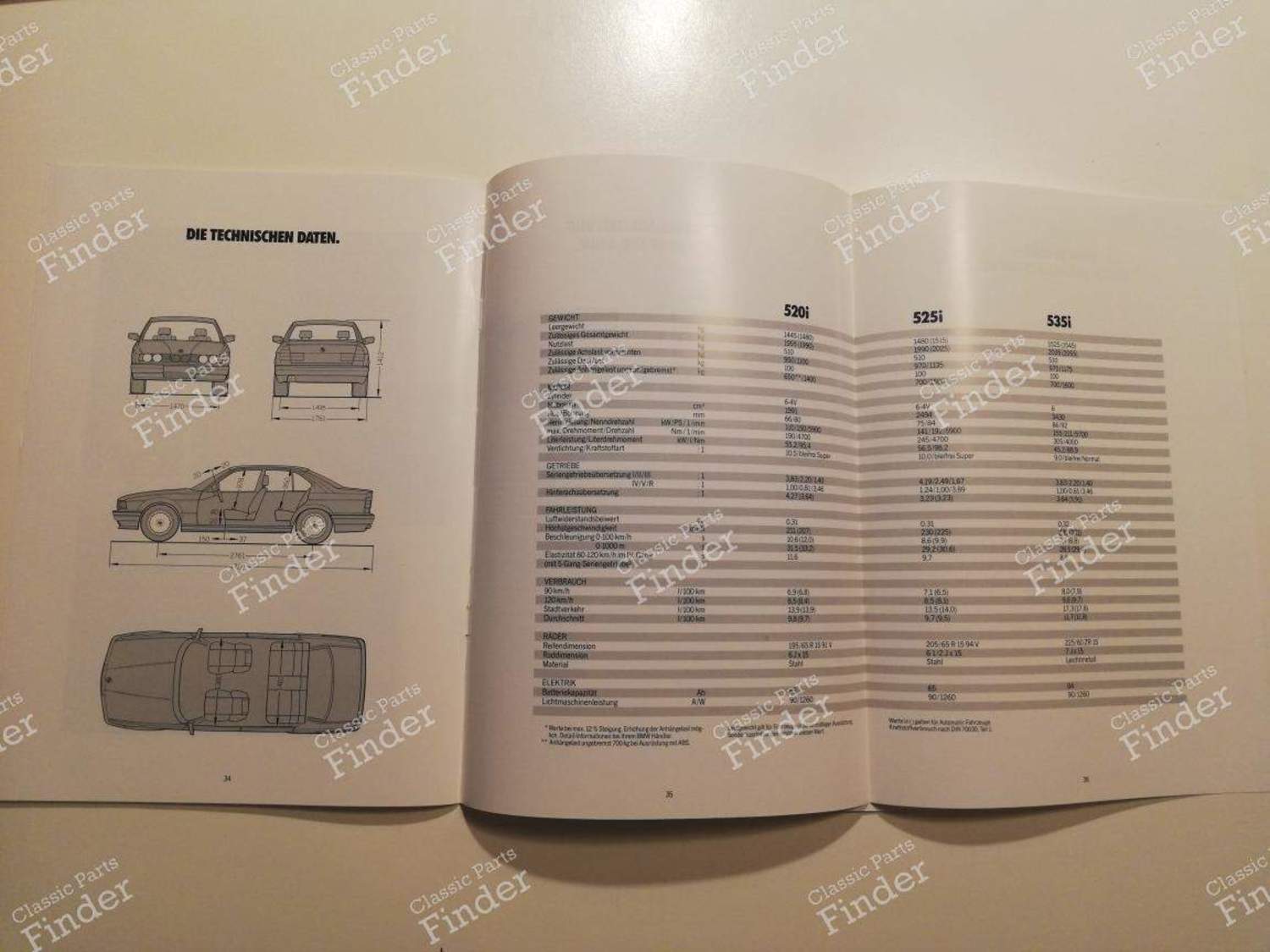 BMW 5 Series presentation brochure, 520i, 525i, and 535i versions 📚 Language: German 🗓 Year of publication: February 1990 📄 Number of pages: 40 Very detailed brochure, with many photos and technical details, as well as optional vintage accessories (airbag, telephony, Hifi, etc.) Brand-new brochure with very slight marks on cover