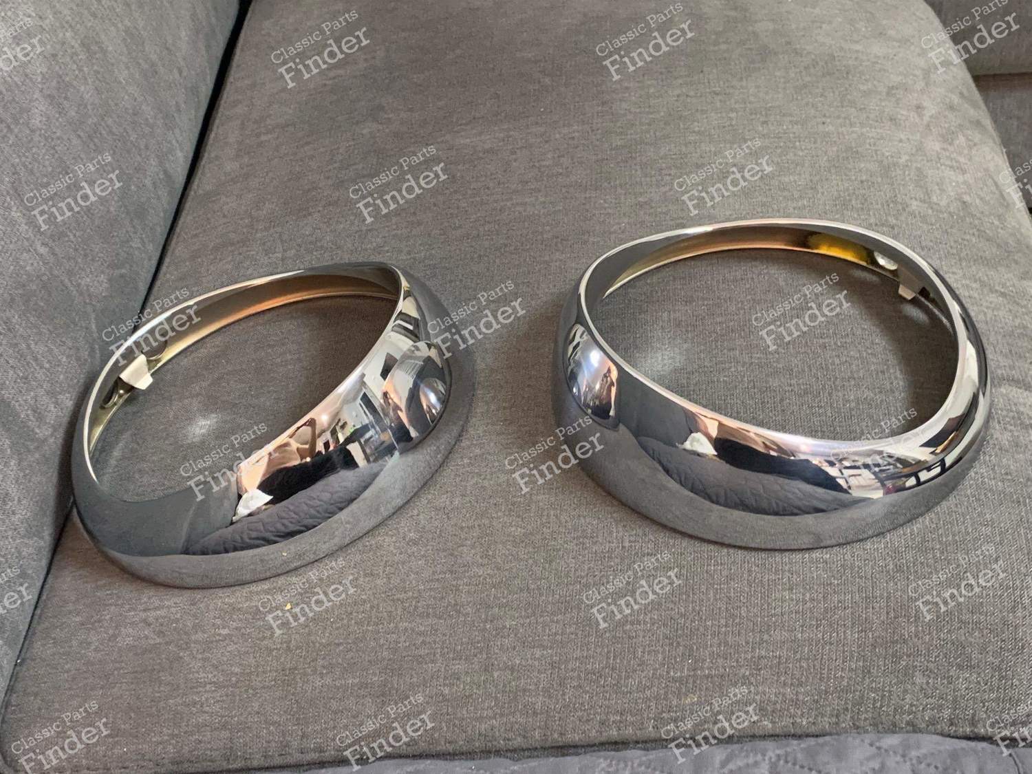 Chrome headlight bezels with visors is one original (oem) vintage part.