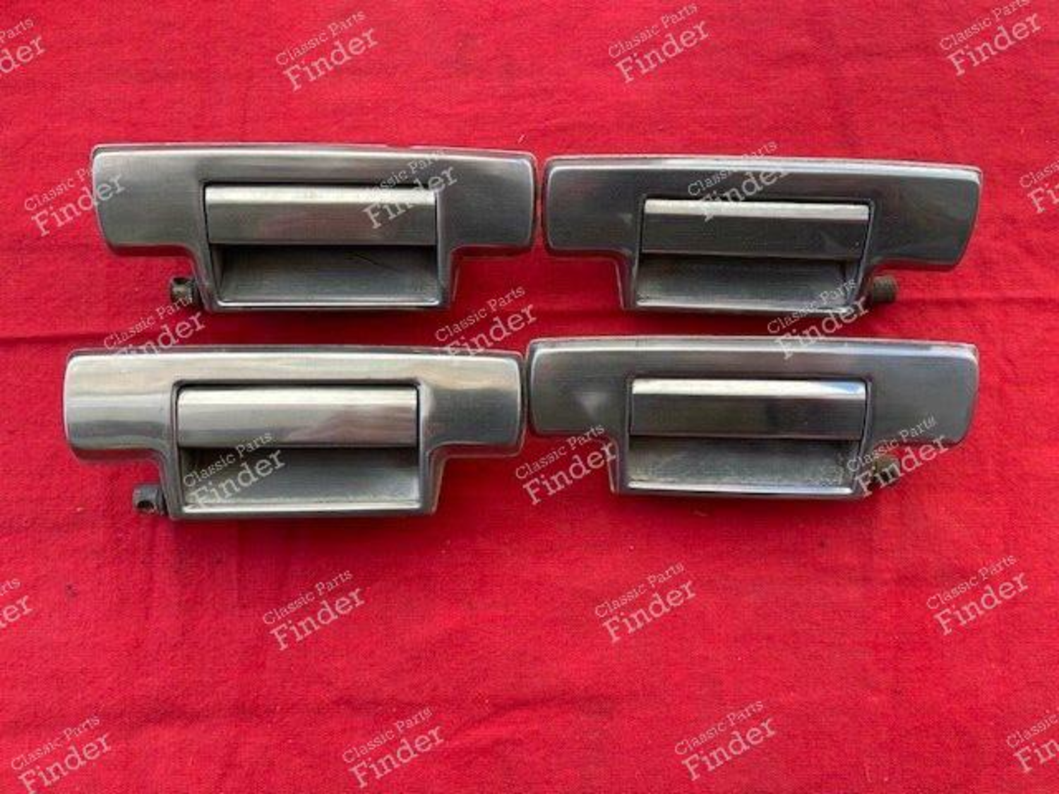 Four stainless steel exterior door handles, 1975 model is one original (oem) vintage part.
