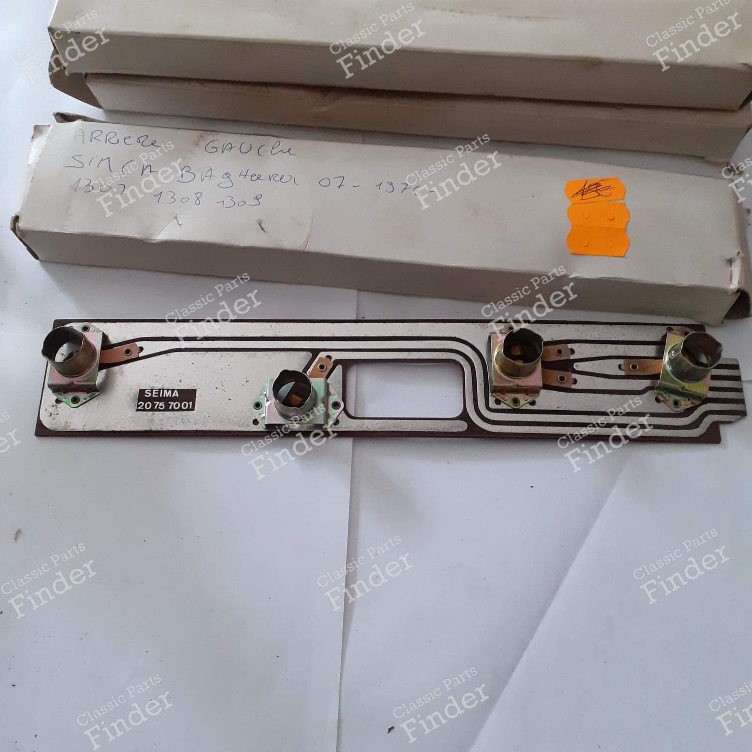 See the description in its original language (French) : Platine porte ampoules arrière gauche pour Matra-Simca Bagheera phase 2, Simca 1307/1308/1309 et Talbot-Chrysler Sunbeam Plusieurs de disponible Ref. Peugeot 0013538200
