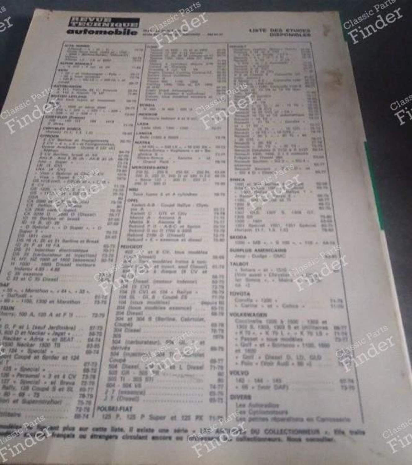 Revue Technique Automobile (RTA) is one original (oem) vintage part.