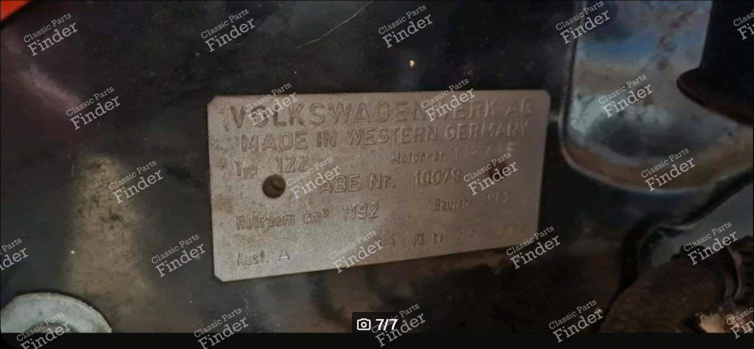 The Classic Parts Finder community offers you a selection of spare parts for your VOLKSWAGEN (VW) Käfer / Beetle / Coccinelle / Escarabajo, and in particular the following part: Complete engine in the following condition: good. The part carries the reference Typ: 122 / ABE: 10079 and was made by Volkswagen. This part is also compatible with: VOLKSWAGEN (VW) T1 (1950 - 1967), VOLKSWAGEN (VW) T2 (1967 - 1979).