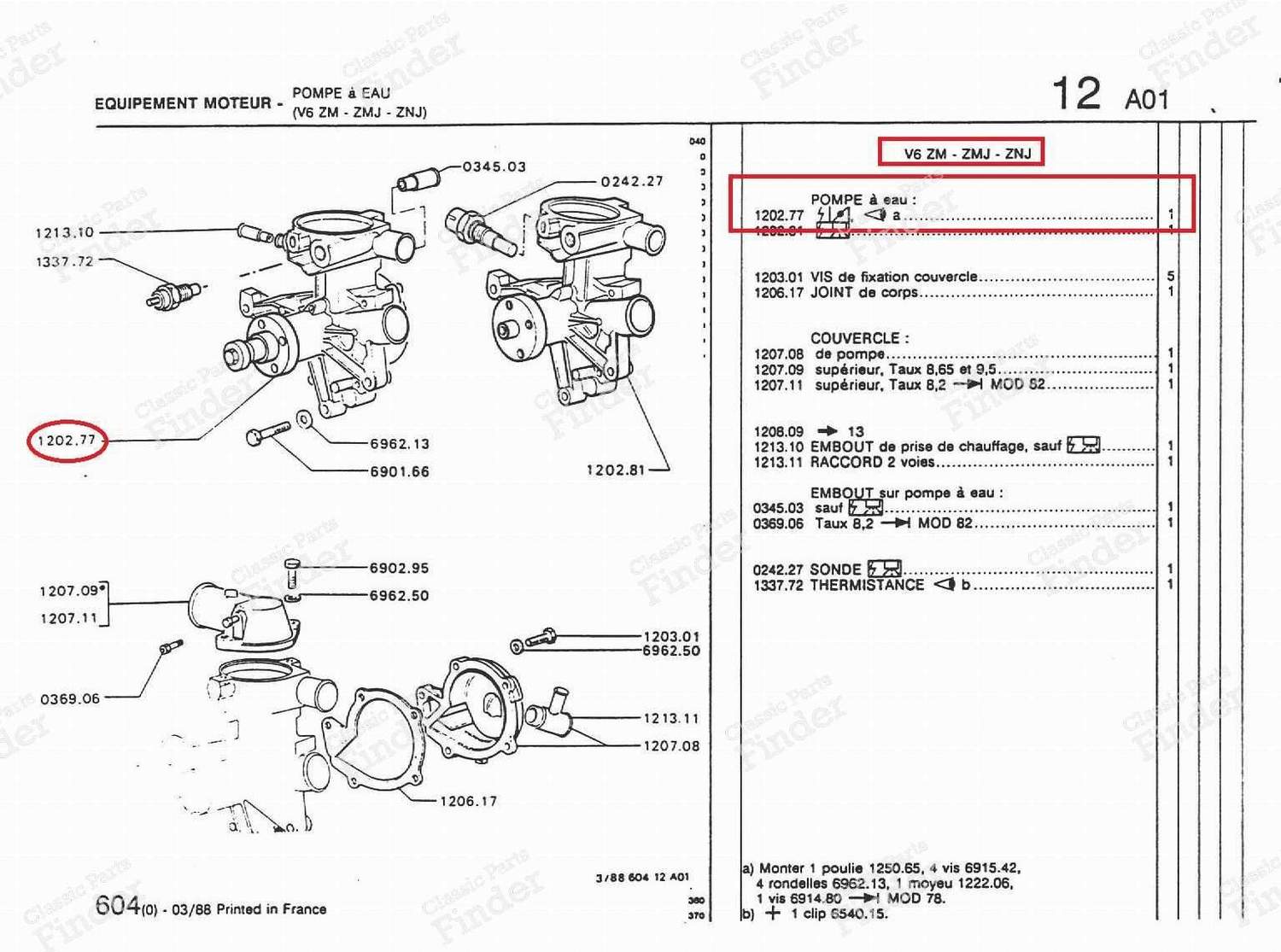 Les pompes à eau des moteurs PRV pour les versions à carburateur (ref. 1202.77) sont différentes des versions équipées de l'injection. La différence e ...